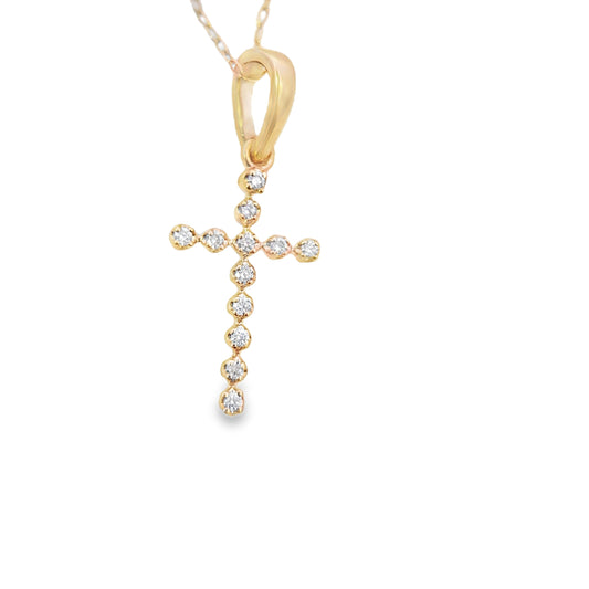 14kt Solid Gold Diamond Cross Pendant Necklace