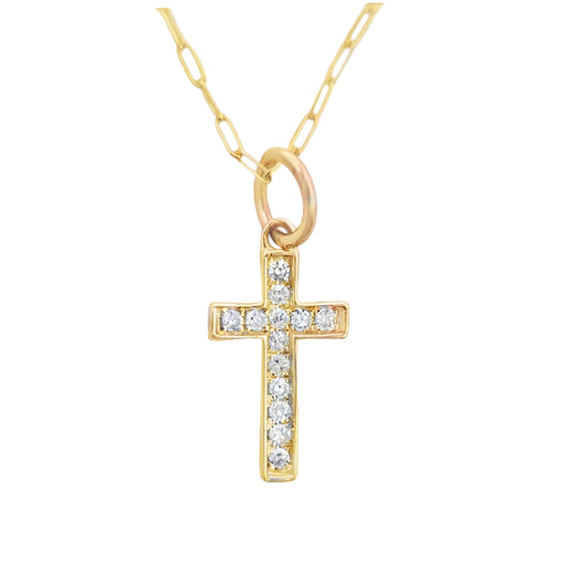 14kt Solid Gold Diamond Cross Pendant Necklace with Paperclip Chain