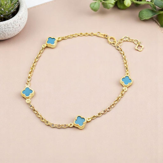 Solid 14K Gold Clover Bracelet – Turquoise Gemstone