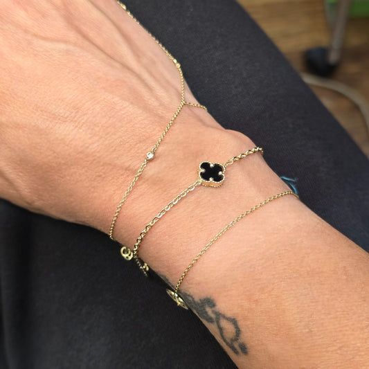 14kt Solid Gold Onyx Clover Bracelet – Dainty Black Onyx Gold Bracelet for Women